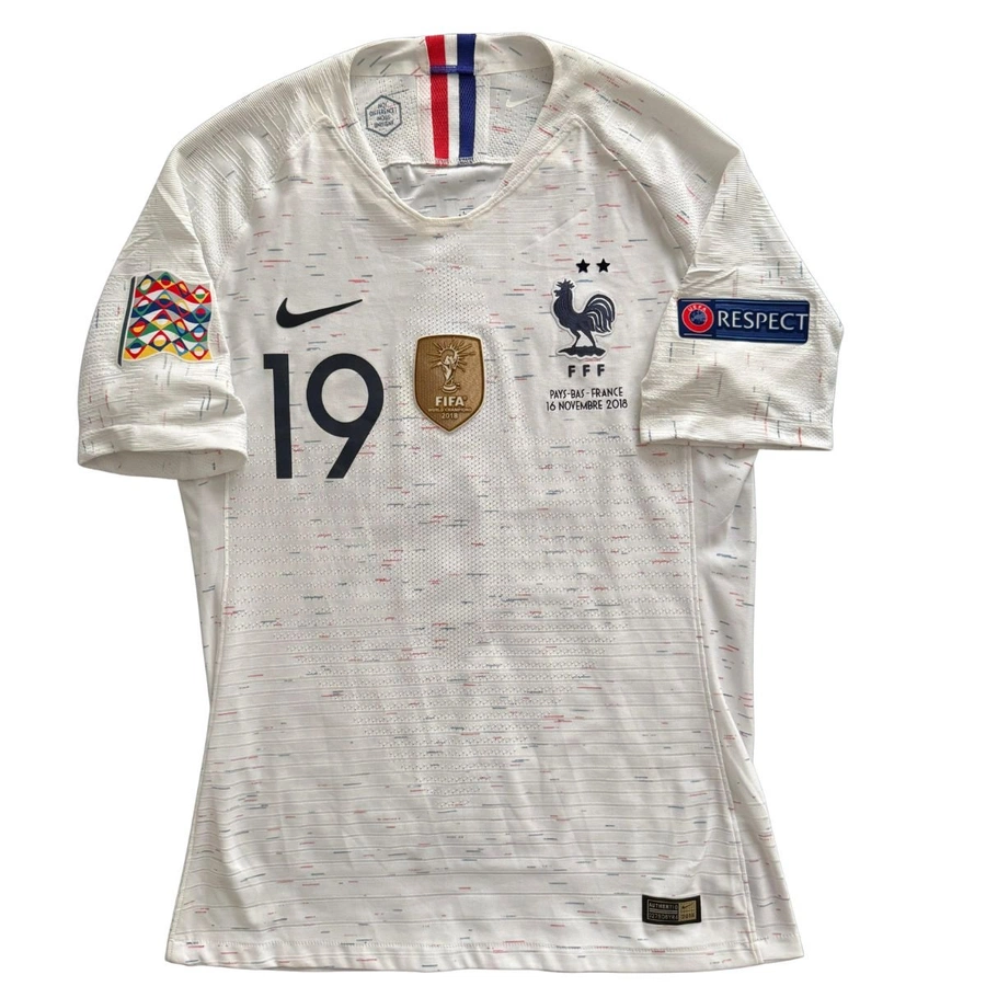 La maglia gara della Francia preparata/indossata in panchina da Sidibe in occasione della partita contro l'Olanda, valevole per la fase ai gironi di Nations League, giocata il 16/11/2018, stagione 2018/19.