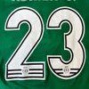 Questo cimelio fa parte della fornitura gara messa a disposizione degli atleti in occasione delle competizioni ufficiali e differisce nelle sue caratteristiche peculiari dai prodotti messi in commercio dallo sponsor tecnico, potrebbe essere stato indossato in partita e lavato dopo il termine della gara oppure preparato per il match ma poi non utilizzato.
