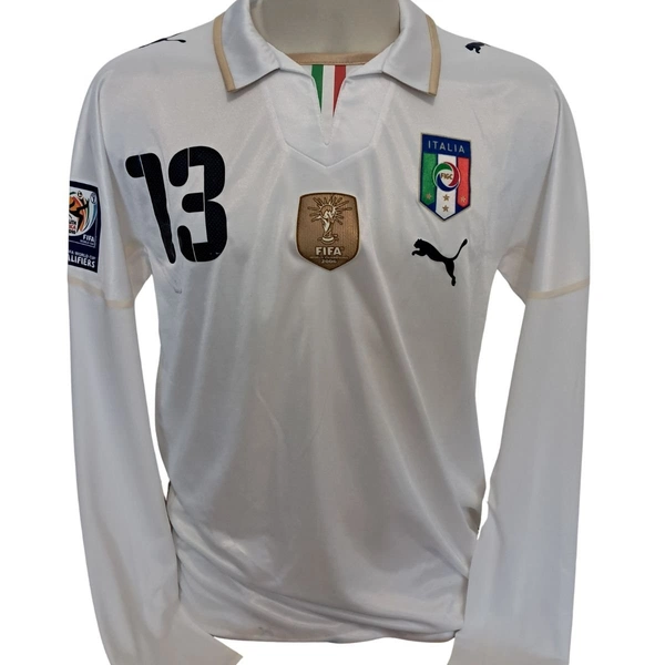 Maglia gara dell'Italia preparata / indossata da Gamberini in occasione di una partita valida per la qualificazione ai Mondiali del 2010 disputati in Sud Africa, stagione 2009/10.