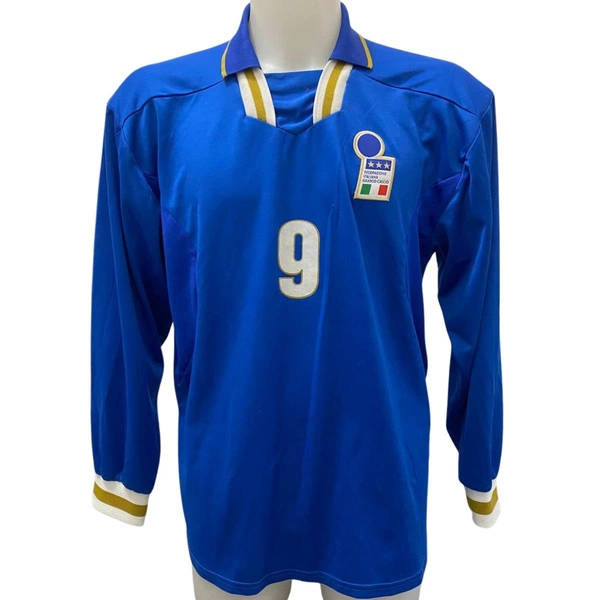Maglia gara dell'Italia preparata / indossata da Vieri, in occasione di una partita valida per per la qualificazione ai Mondiali 1996, stagione 1996/97.