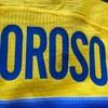 Questo cimelio fa parte della fornitura gara messa a disposizione degli atleti in occasione delle competizioni ufficiali e differisce nelle sue caratteristiche peculiari dai prodotti messi in commercio dallo sponsor tecnico, potrebbe essere stato indossato in partita e lavato dopo il termine della gara oppure preparato per il match ma poi non utilizzato.