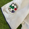 Questo cimelio fa parte della fornitura gara messa a disposizione degli atleti in occasione delle competizioni ufficiali e differisce nelle sue caratteristiche peculiari dai prodotti messi in commercio dallo sponsor tecnico, potrebbe essere stato indossato in partita e lavato dopo il termine della gara oppure preparato per il match ma poi non utilizzato.