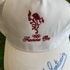 I cappellini rosso e bianco delle Fiamme Oro autografati da Alberta Santuccio.