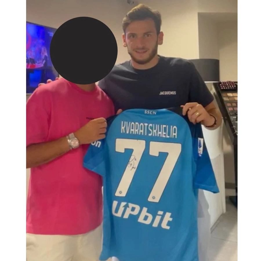 Kvaratskhelia ha autografato la maglia sul retro.