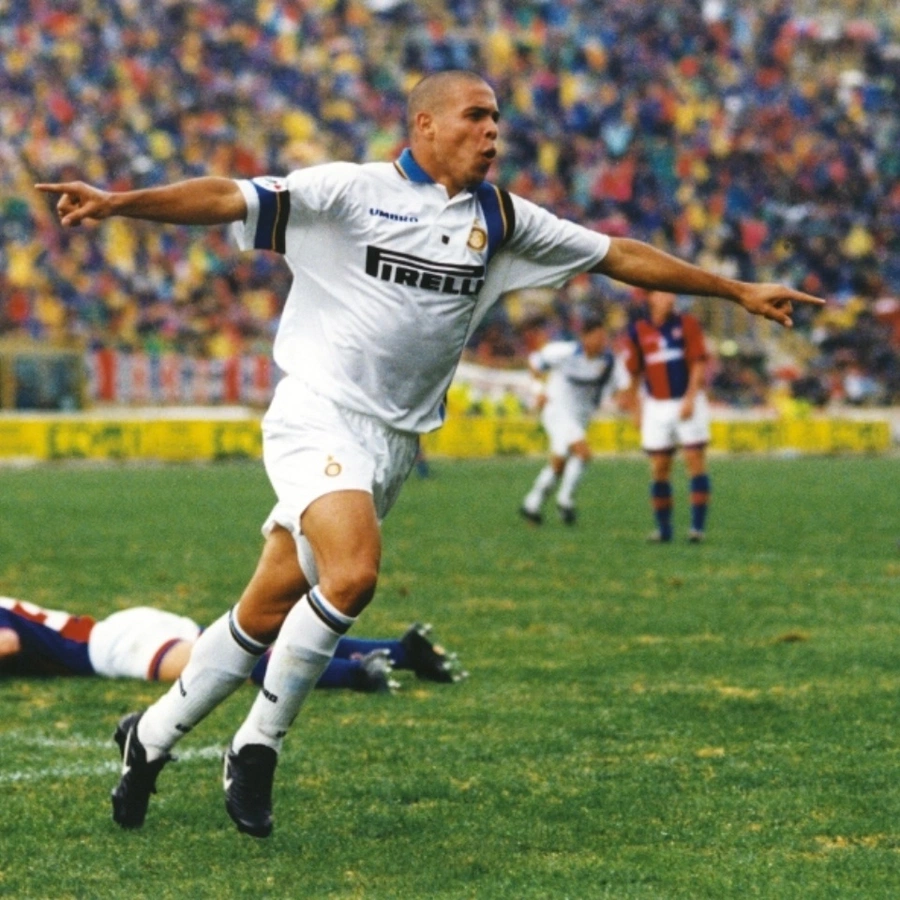 La maglia vintage store dell'Inter, personalizzata con nome e numero di Ronaldo, stagione 1997/98.