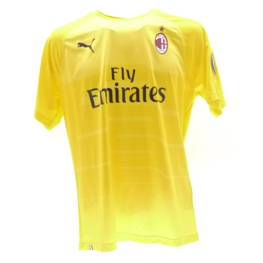 Maglia gara del Milan preparata/indossata da Donnarumma in occasione di una partita di Coppa Italia contro la Sampdoria giocata il 12/01/2019, stagione 2018/2019.