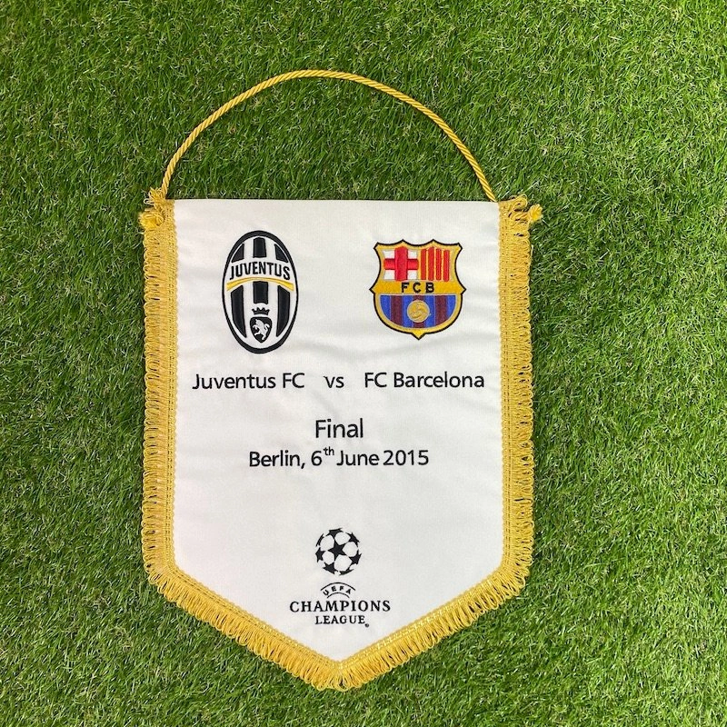 Il gagliardetto ufficiale della Juventus valido per la finale di Champions League contro il Barcellona giocata a Berlino il 06/06/2015, stagione 2014/2015.