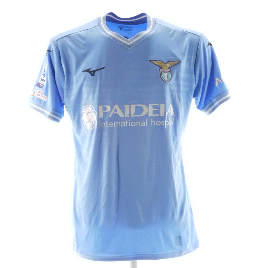 La maglia gara della Lazio indossata da Immobile nella partita contro la Juventus giocata il 30/03/24, stagione 2023/24.