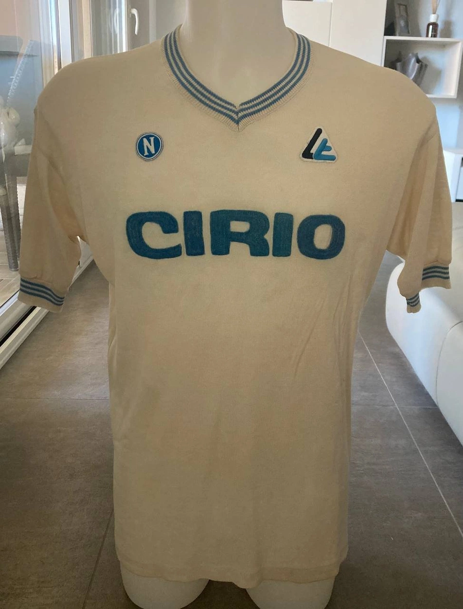 Maglia gara del Napoli preparata / indossata da Maradona in occasione di una partita di Serie A, stagione 1984/85.