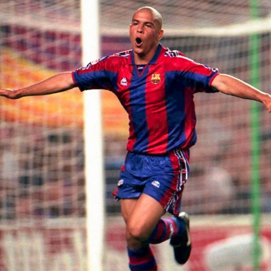 La maglia store del Barcellona, personalizzata con nome e numero di Ronaldo, stagione 1995/96