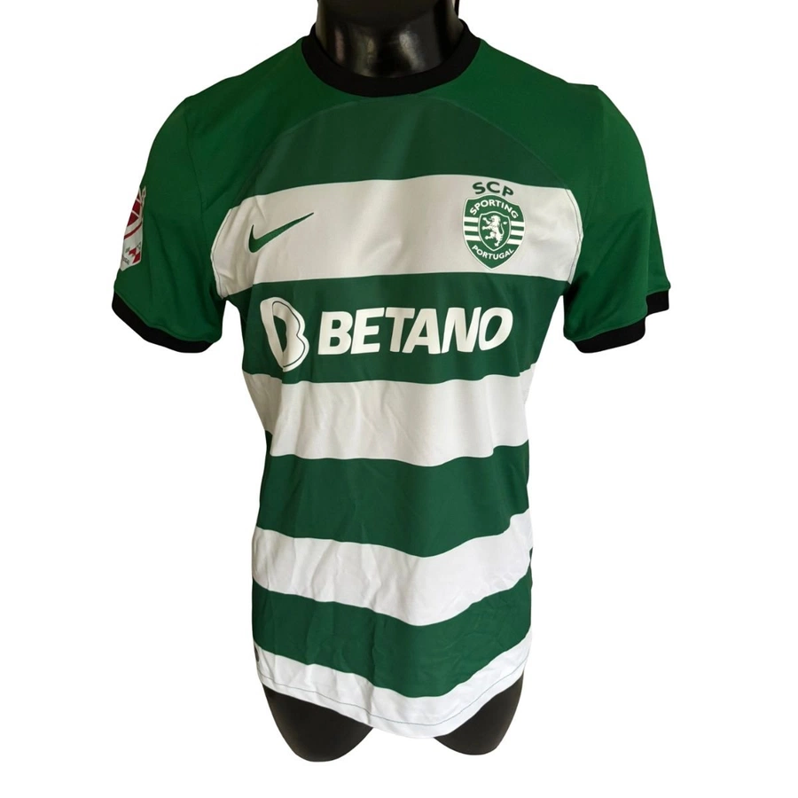 La maglia gara della Sporting Lisbona indossata da Matheus Reis nella partita contro il Benfica giocata il 02/04/2024, valida per la semifinale della coppa del Portogallo, stagione 2023/24.