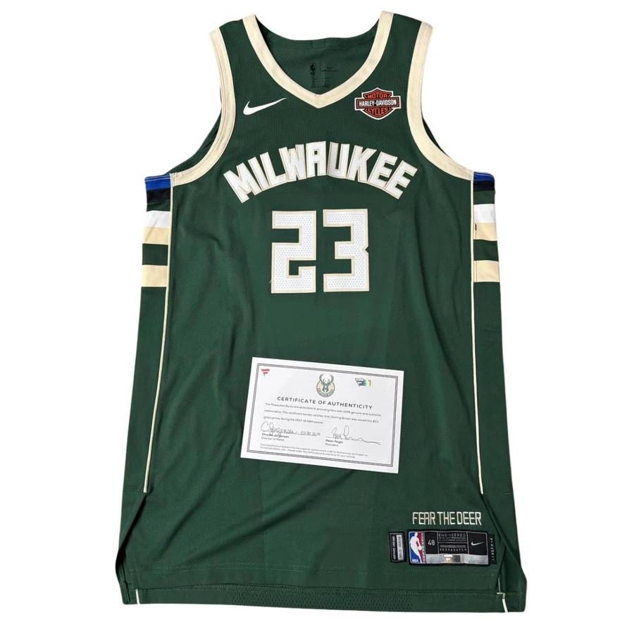 Canotta gara dei Milwaukee Bucks preparata da Brown in occasione di una partita di NBA, stagione 2017/18.
